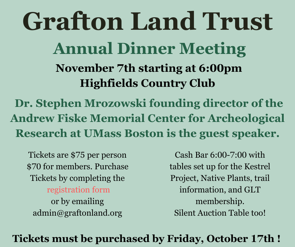 - If you want to buy a full table of 8, email the GLT Office Manager at admin@graftonland.org